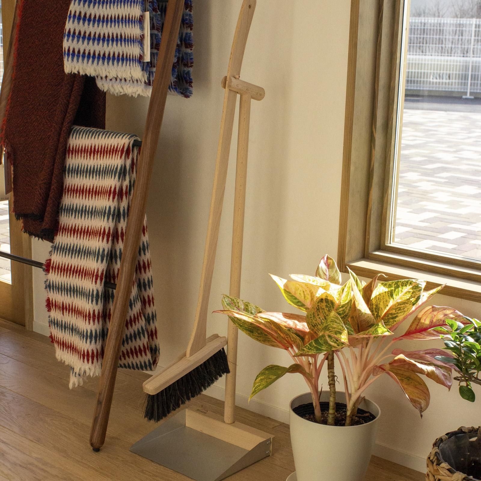 リビングやキッチン、玄関の掃除にぴったりなスタンドブルームセット。ちりとりが自立してホウキを引っかけておけるので、そのままお部屋の片隅に置きっぱなしでもインテリアの邪魔にならず、こまめにお掃除できます。